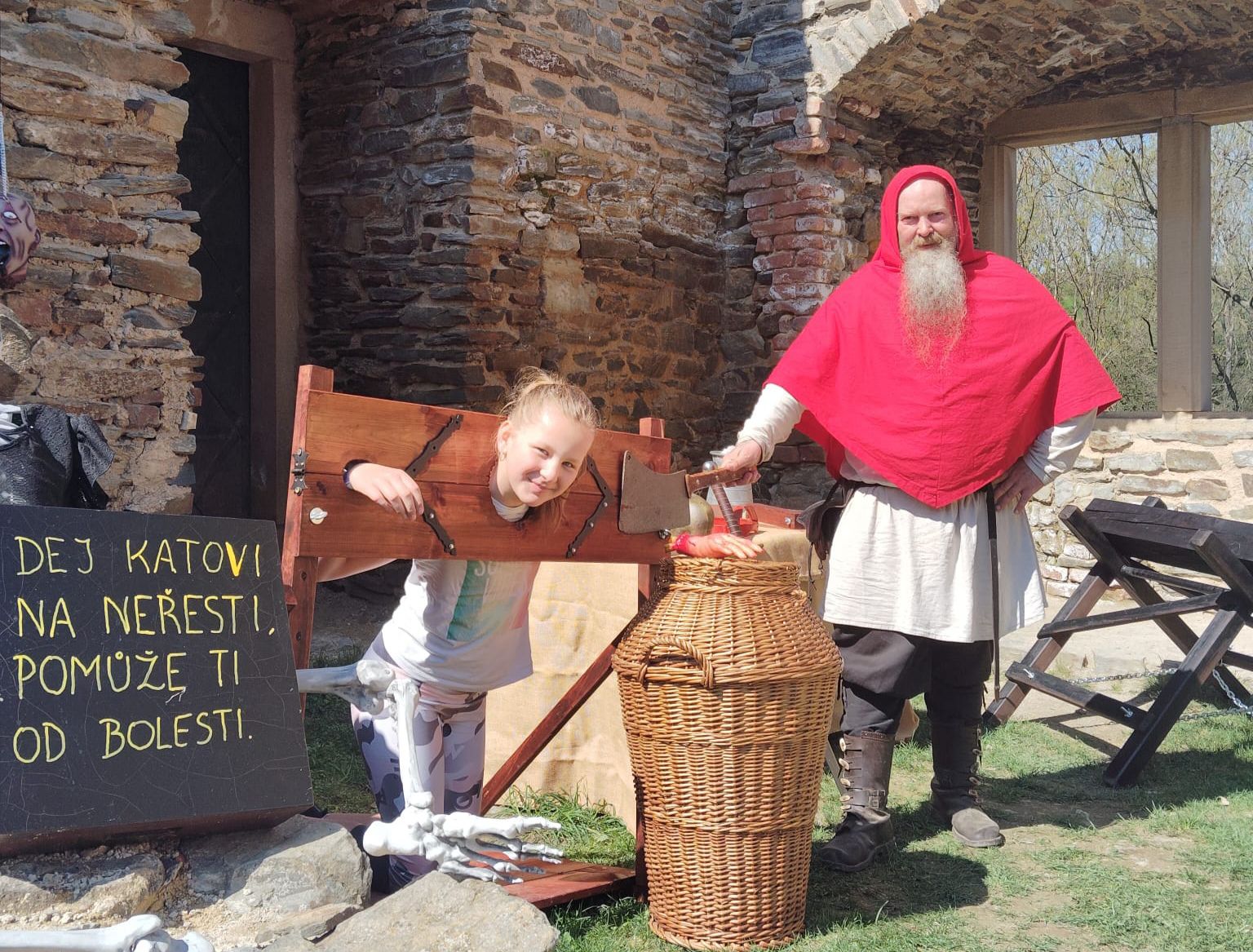 Katovské řemeslo vážně i nevážně. Kat, jeho katovské náčiní, povídání o tom všem a předvádění jednotlivých kousků, nebo inkviziční proces s pohlednou čarodějnicí, případně exemplární potrestání známého lumpa a další kousky z trpkého katovského řemesla žertovně i vážně. Katovská podívaná v několika 20ti minutových blocích během celého dne, Humorná přednáška o právu útrpném. Cena od 6000,-plus doprava z Prahy 8.-/km